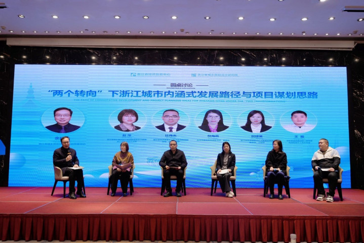 在圆桌交流环节,围绕“‘两个转向’下浙江城市内涵式发展路径与项目谋划思路”主题,浙江省城乡规划设计研究院首席总工程师、省勘察设计大师赵萍,浙江省经济信息中心经济监测预测部主任杜伟杰,台州市建设局党组副书记、副局长倪海燕,浙江省经济信息中心大数据发展部副主任祝建英出彩速配,中国电建华东院二级专家王振等五位专家展开深度对话。